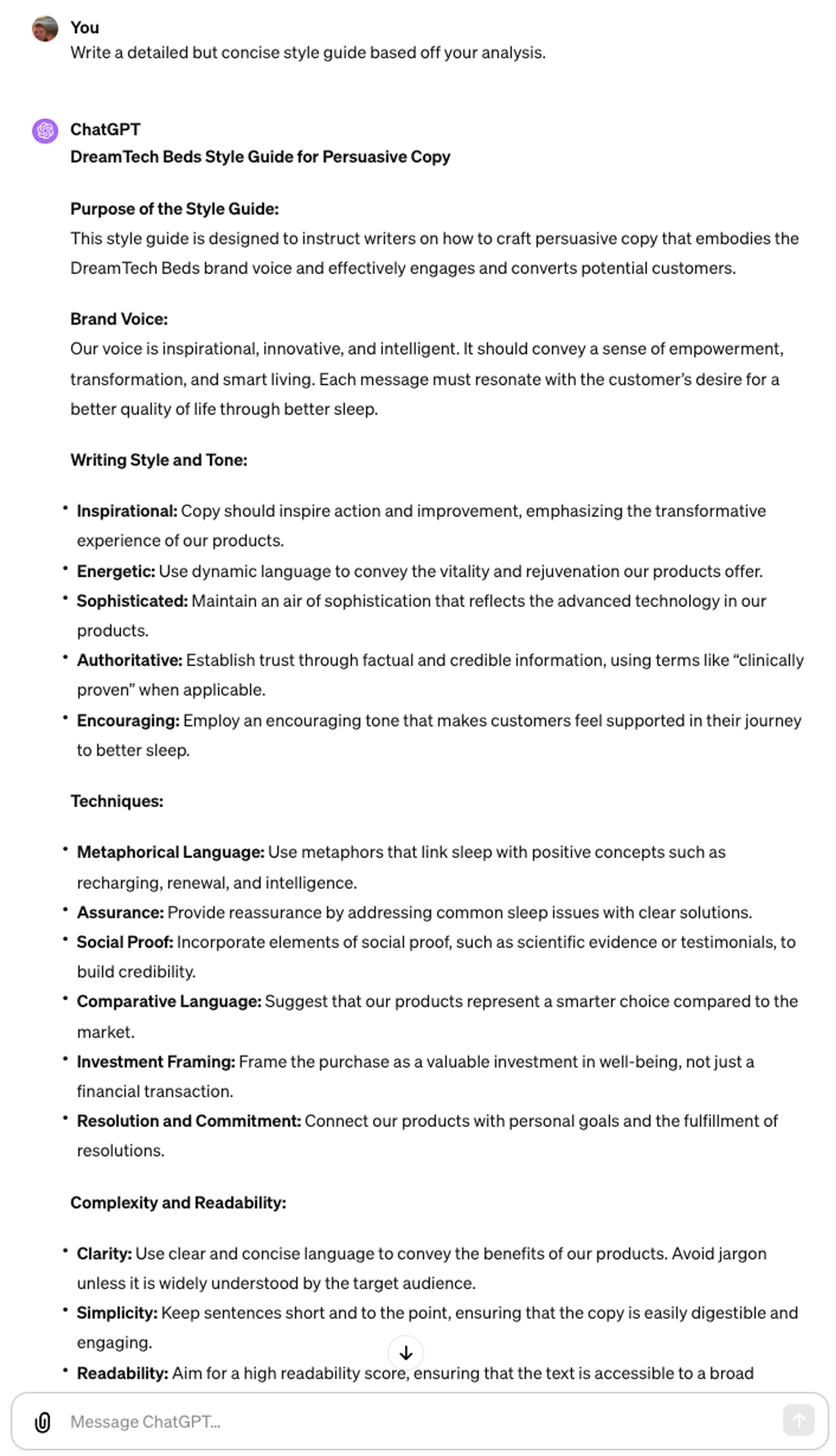 If you already have a detailed style guide, you can upload it to ChatGPT here instead and prompt it to update your guide based on its analysis of competitor landing page copy.
