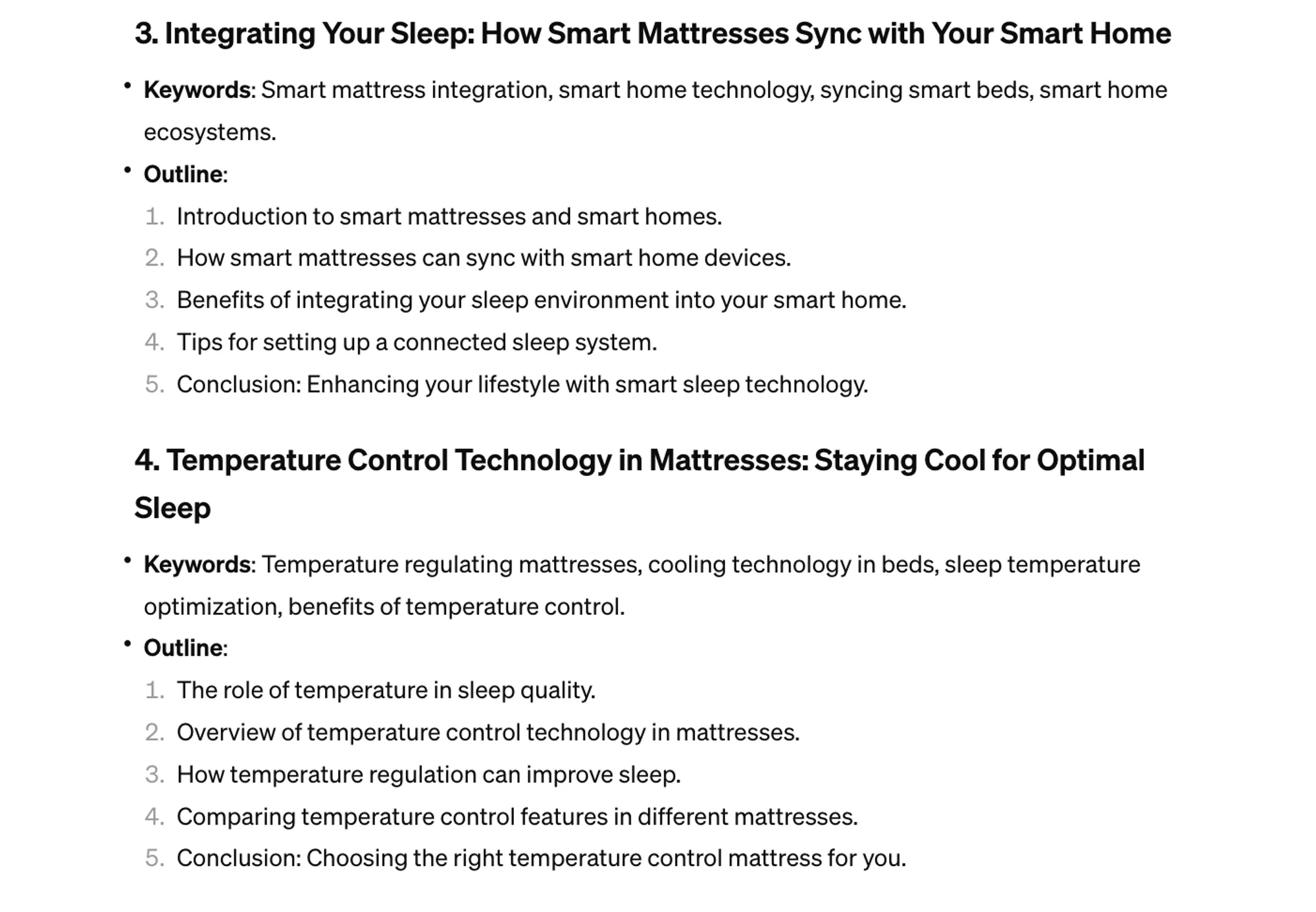 Now assume that you are an expert SEO specialist. What are the key industry keywords for a mattress company focused on tech professionals?.webp)
