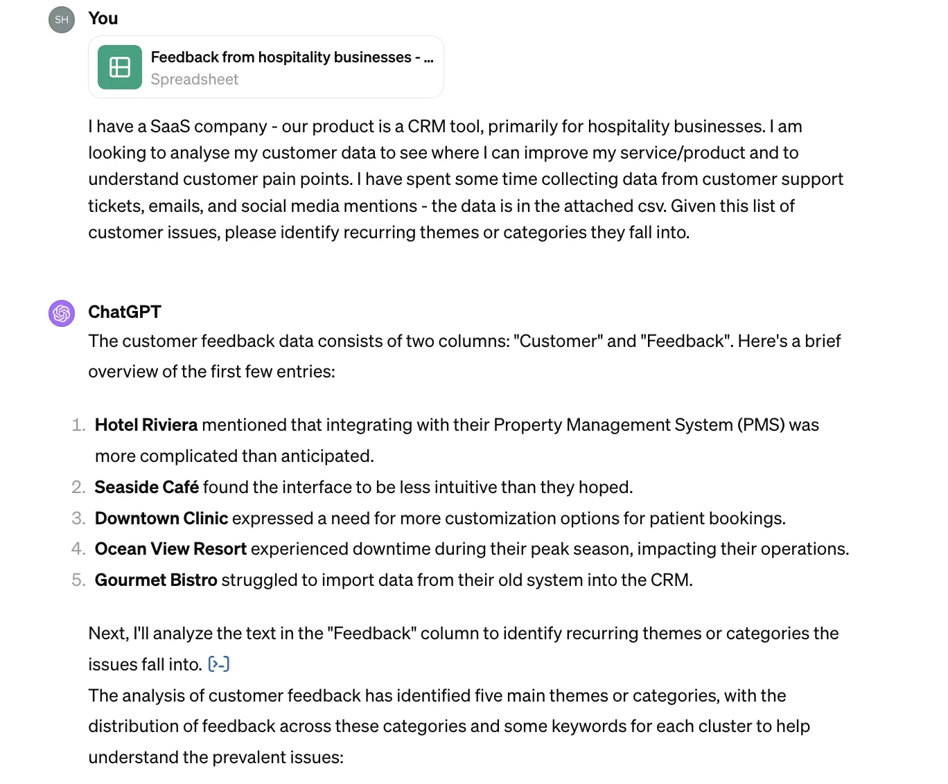 You’ll need to start by collecting data from your customer support tickets, emails, social media mentions, and any other customer interaction points. Pull it all together into a format that you can feed into ChatGPT, e.g. a csv file.